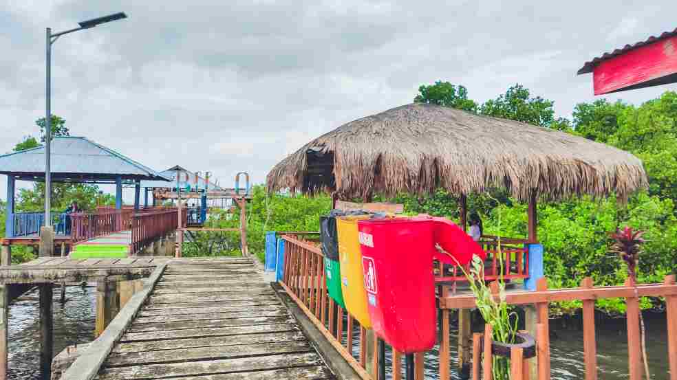 Dari kejauhan, destinasi wisata ini bahkan sudah terlihat sangat keren dan mencuri perhatian. Pasalnya, tampak sejumlah gazebo yang berjejer dengan beberapa spot foto menarik di beberapa titik mangrove tracking pad seakan menyambut pengunjung.