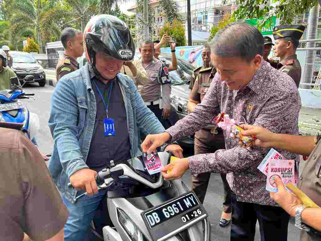 Pada kesempatan ini, Kejaksaan Tinggi Sulawesi Utara mendapat satu kehormatan oleh karena Ketua Komisi Kejaksaan RI Dr. Barita Simanjuntak, SH., MH., CFrA ikut serta bersama-sama dengan Kepala Kejaksaan Tinggi Sulawesi Utara Dr. Andi Muhammad Taufik, SH., MH., CGCAE membagikan dan memasang stiker yang bertuliskan Stop Korupsi pada kendaran yang melintas di depan Kantor Kejaksaan Tinggi Sulawesi Utara.