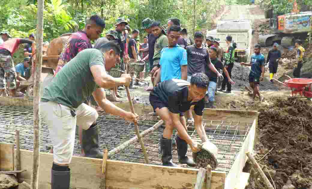 “Mengejar pembangunan anggota Satgas melakukan pengecoran lantai atas Plat Duiker yang berada di jarak 50 meter dari titik nol, itu artinya jalan yang saat ini kita rintis dari jarak 50 meter ke jarak selanjutnya sudah terhubung oleh plat Duiker ini, Katanya.