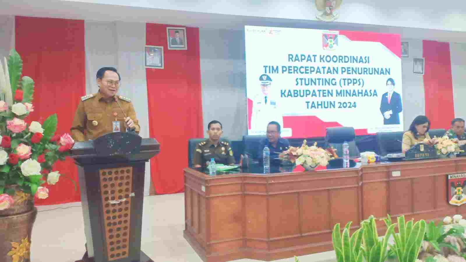 MINAHASA (Detikgo.com)-Penjabat Bupati Kab Minahasa Dr Noudy R.P. Tendean SIP, M,Si membuka Rapat Koordinasi Tim Percepatan Penurunan Stunting (TPPS) Kabupaten Minahasa, bertempat di ruang sidang kantor Bupati Minahasa Selasa, (8/10/2024).