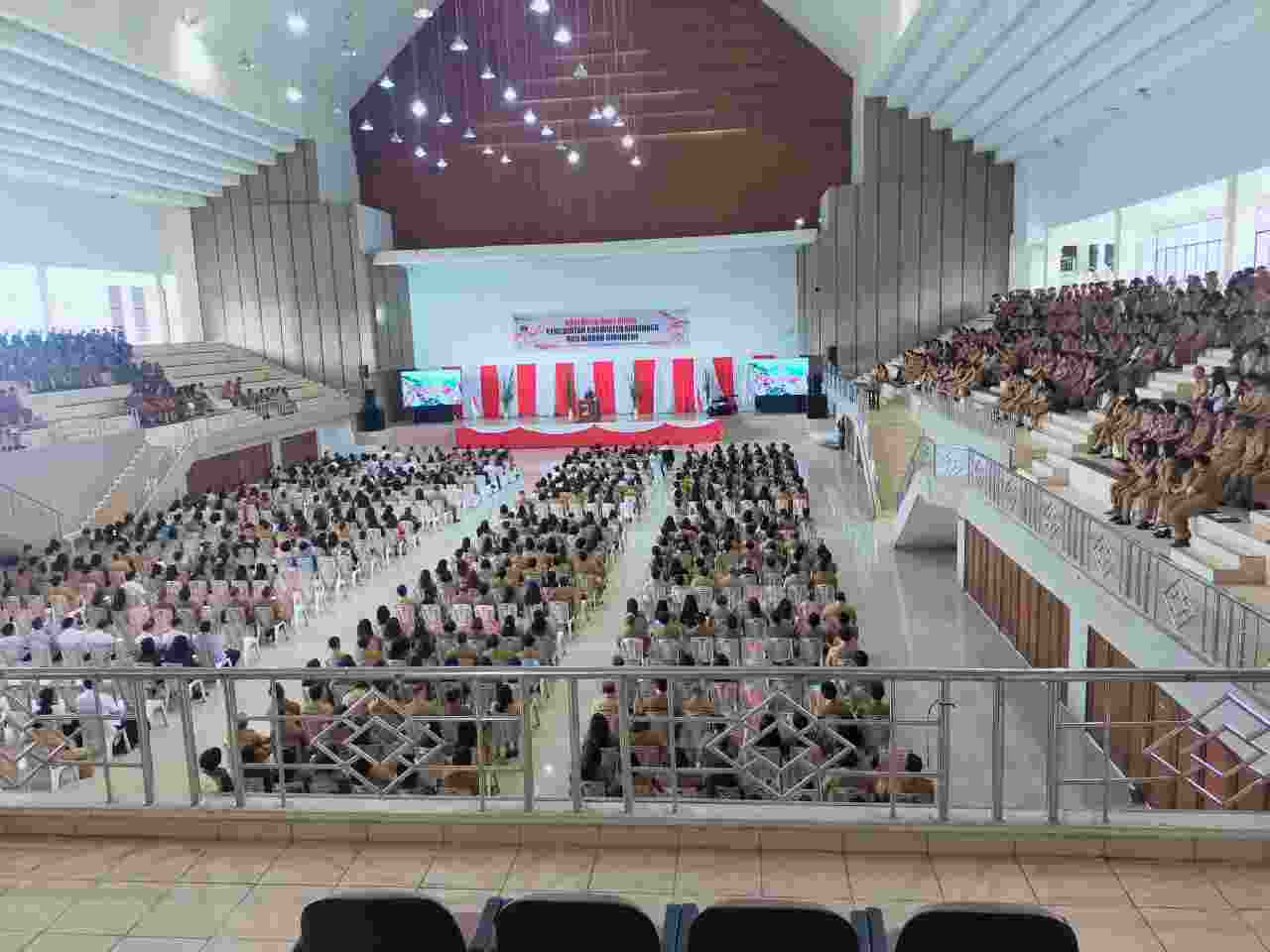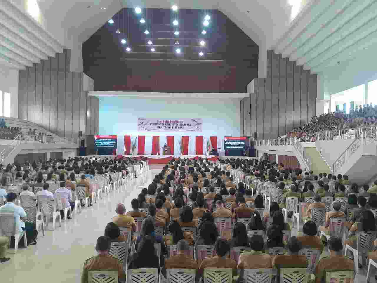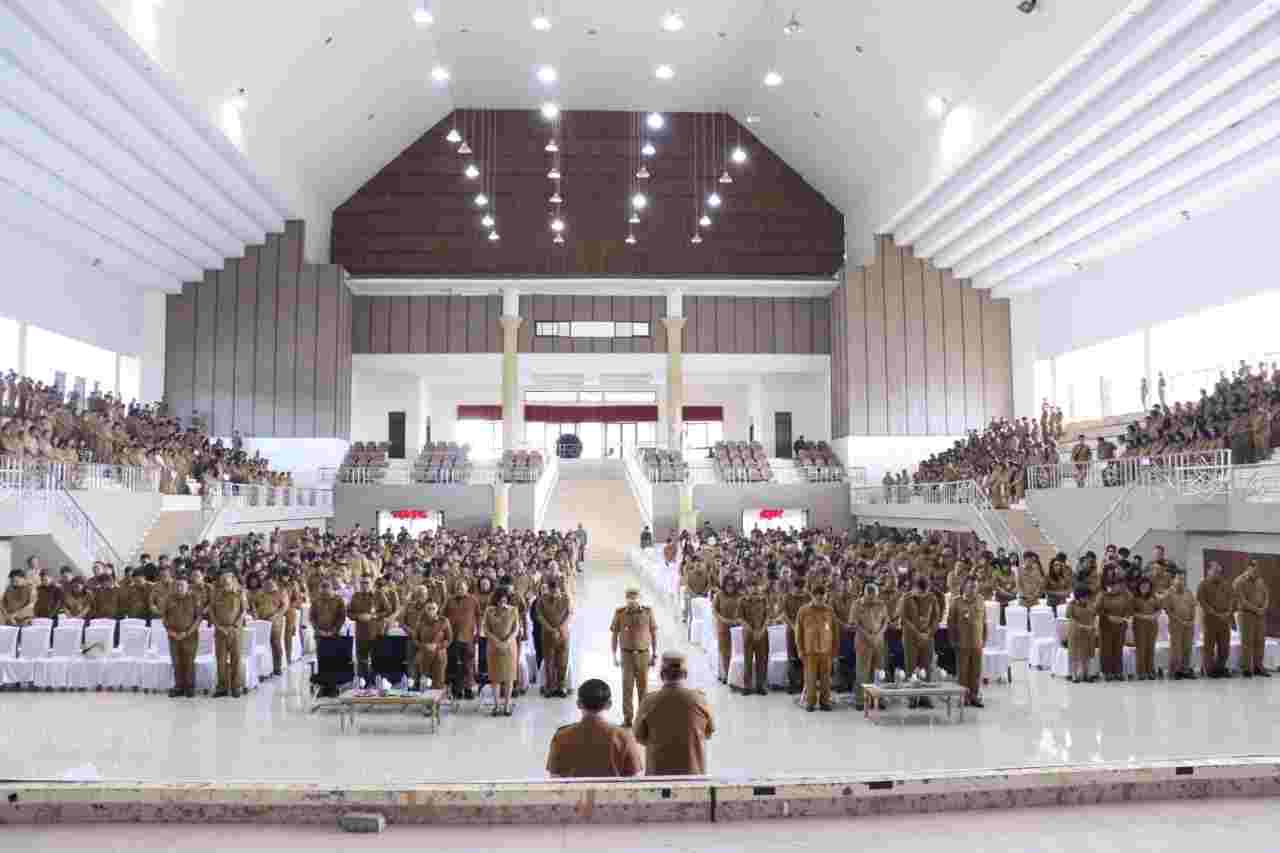 MINAHASA (detikgo.com)-Bupati Kab Minahasa, Robby Dondokambey, SSi, MAP, bersama Wakil Bupati Minahasa, Vanda Sarundajang, S.S, memimpin Apel Kerja Perdana Awal Bulan yang dirangkaikan dengan Ibadah Oikumene yang dipimpin Pdt. DR. Adolf Katuuk Wenas, M.Th. selaku Wakil Ketua bidang misi dan hubungan kerjasama BPMS GMIM. Kegiatan ini berlangsung di Gedung Wale ne Tou Minahasa pada Senin (10/3/25).