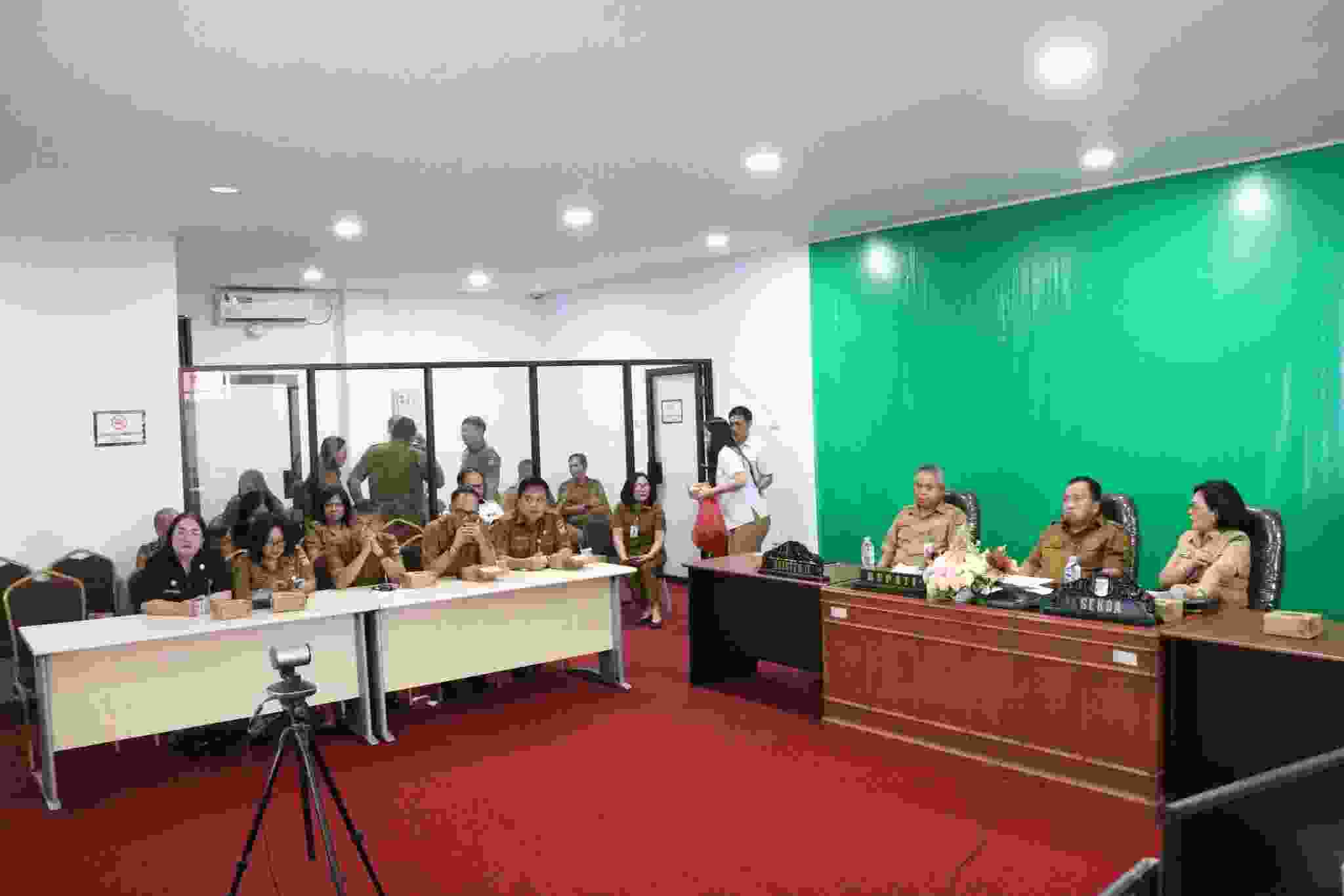 Bupati Kab Minahasa mengikuti jalannya Rakor dari Command Center Kantor Bupati Minahasa, didampingi oleh Sekretaris Daerah Dr. Lynda D. Watania, M.M., M.Si, Asisten II Bidang Perekonomian dan Pembangunan Drs. Arody Tangkere, serta jajaran Tim Pengendalian Inflasi Daerah (TPID).