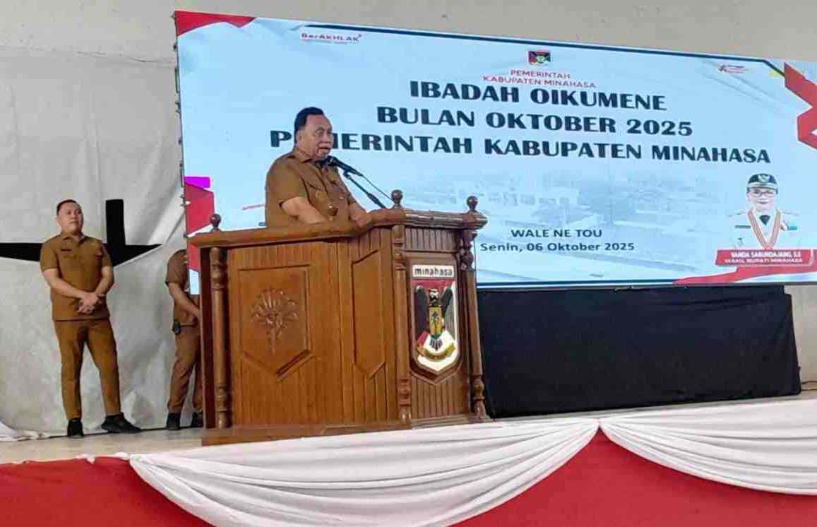 Arahan tersebut disampaikan Bupati dalam Ibadah Oikumene Pemerintah Kabupaten Minahasa yang berlangsung di Gedung Wale Ne Tou, Senin (6/10/2025). Kegiatan ini juga menjadi momen refleksi dan evaluasi kinerja menjelang akhir tahun anggaran.