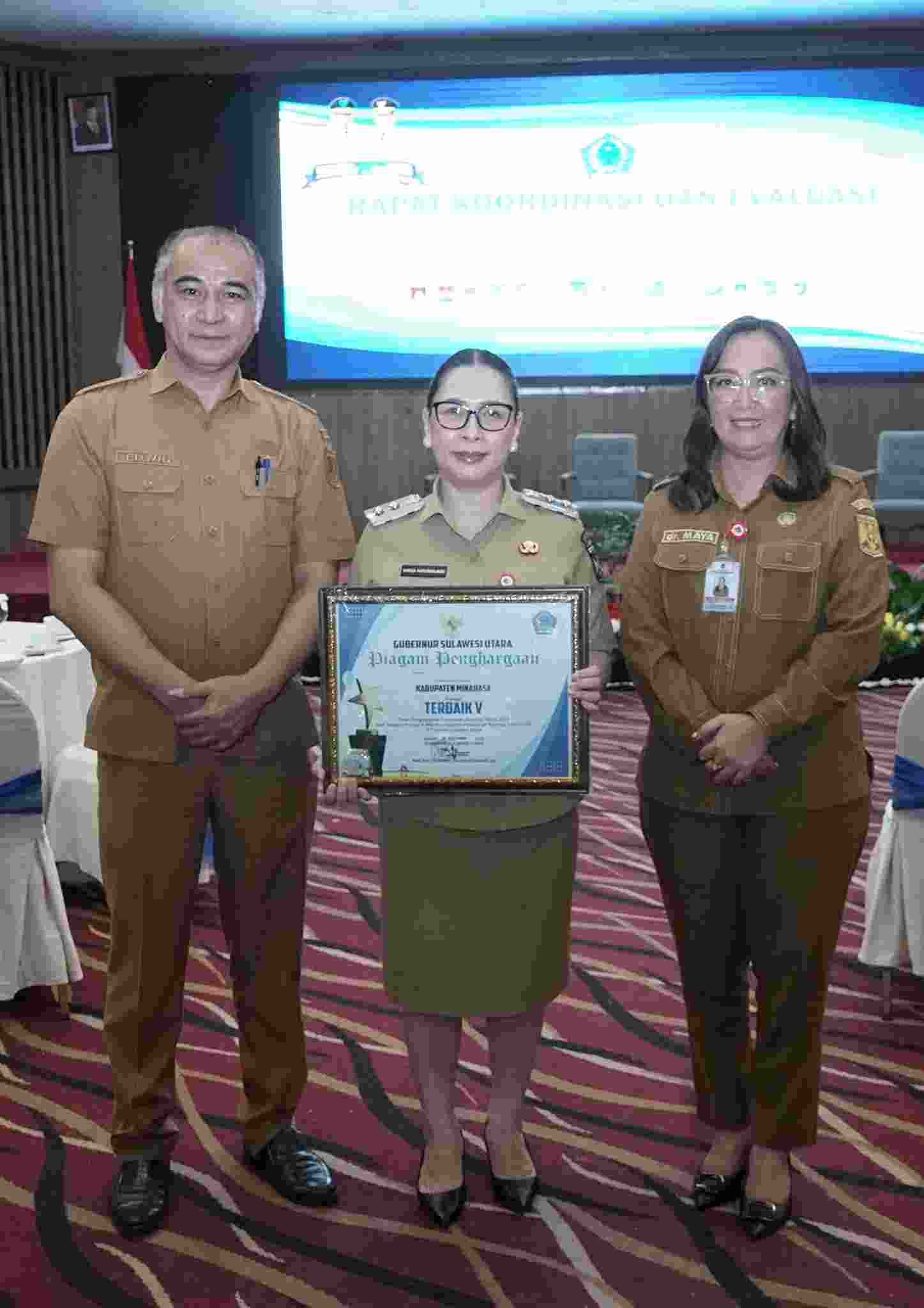 Dalam momentum tersebut, Pemerintah Kabupaten Minahasa menerima Piagam Penghargaan sebagai Terbaik V dalam kategori Kinerja Pelaksanaan 8 Aksi Konvergensi Penurunan Stunting Tahun 2024. Penghargaan ini menjadi bukti konkret atas keberhasilan daerah dalam mempercepat penanganan stunting di Sulawesi Utara.