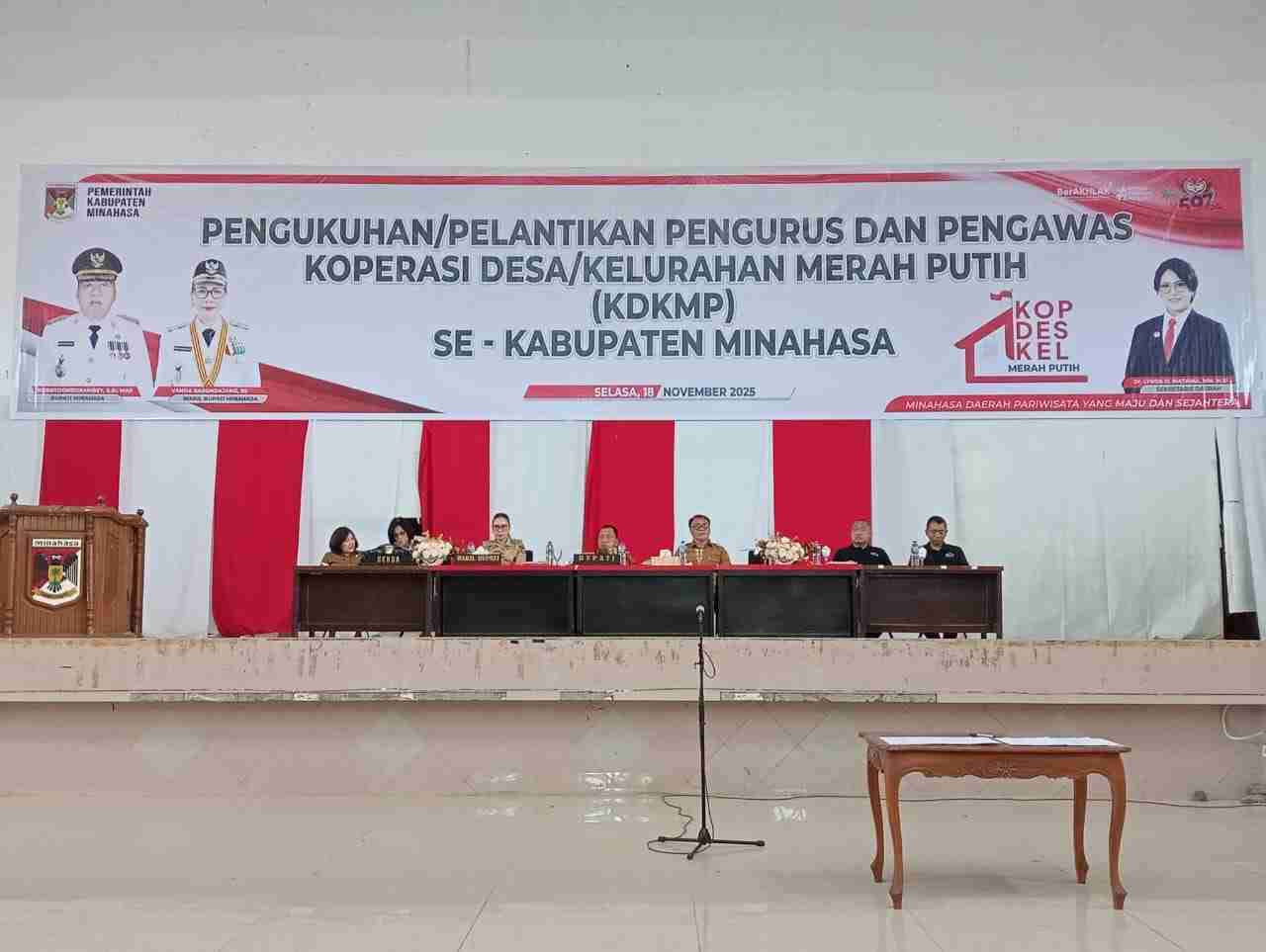 MINAHASA (detikgo.com)— Pemerintah Kabupaten Minahasa mengukuhkan dan melantik pengurus serta pengawas Koperasi Desa/Kelurahan Merah Putih (KDKMP) se-Kabupaten Minahasa dalam upacara besar yang digelar di Gedung Wale Ne Tou Tondano, Kecamatan Tondano Utara, pukul 15.35 Wita. Acara ini dihadiri sekitar 2.000 peserta, dipimpin langsung Bupati Kab Minahasa, Robby Dondokambey, S.Si., MAP. Selasa, 18/11/2025.